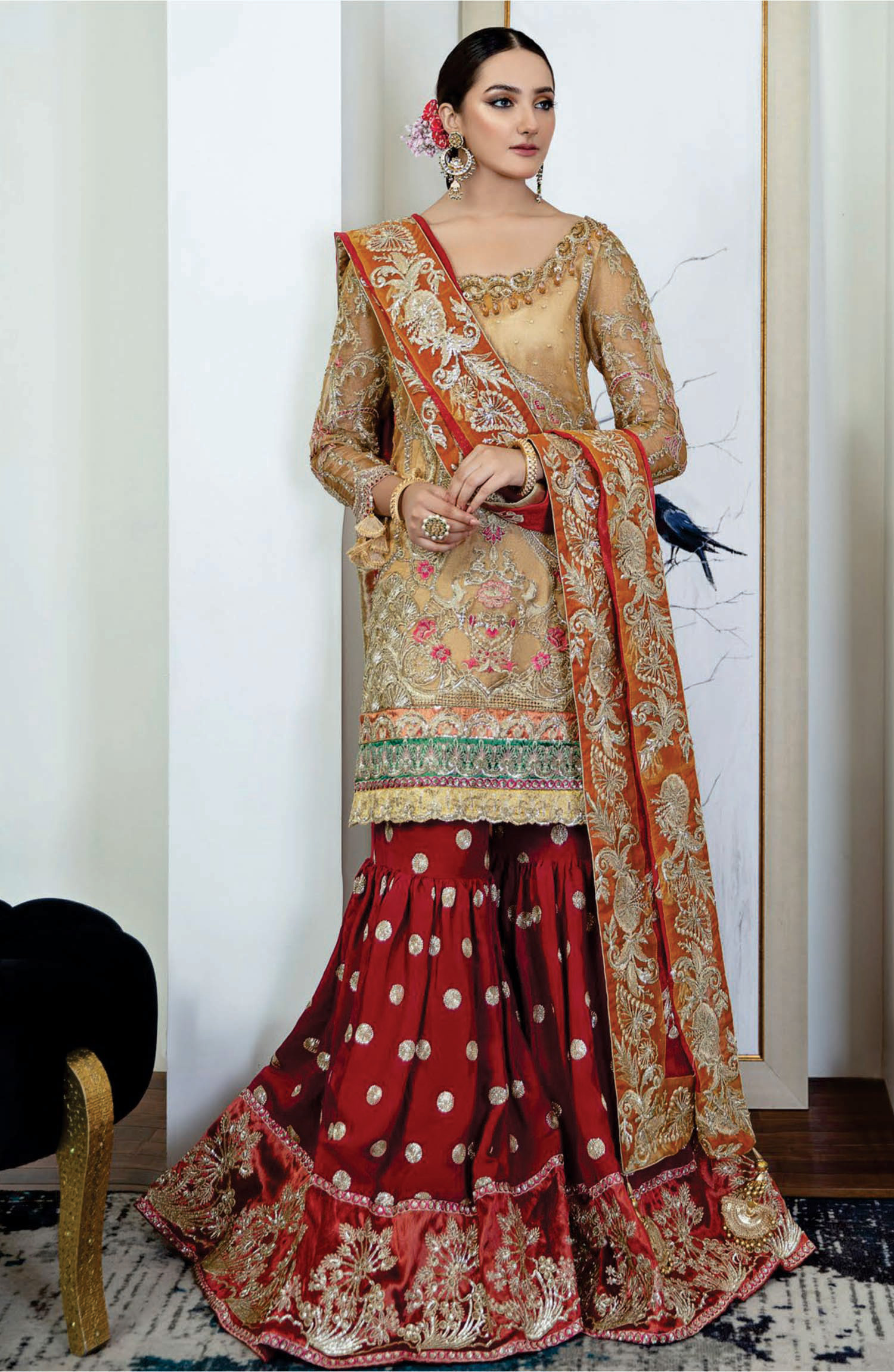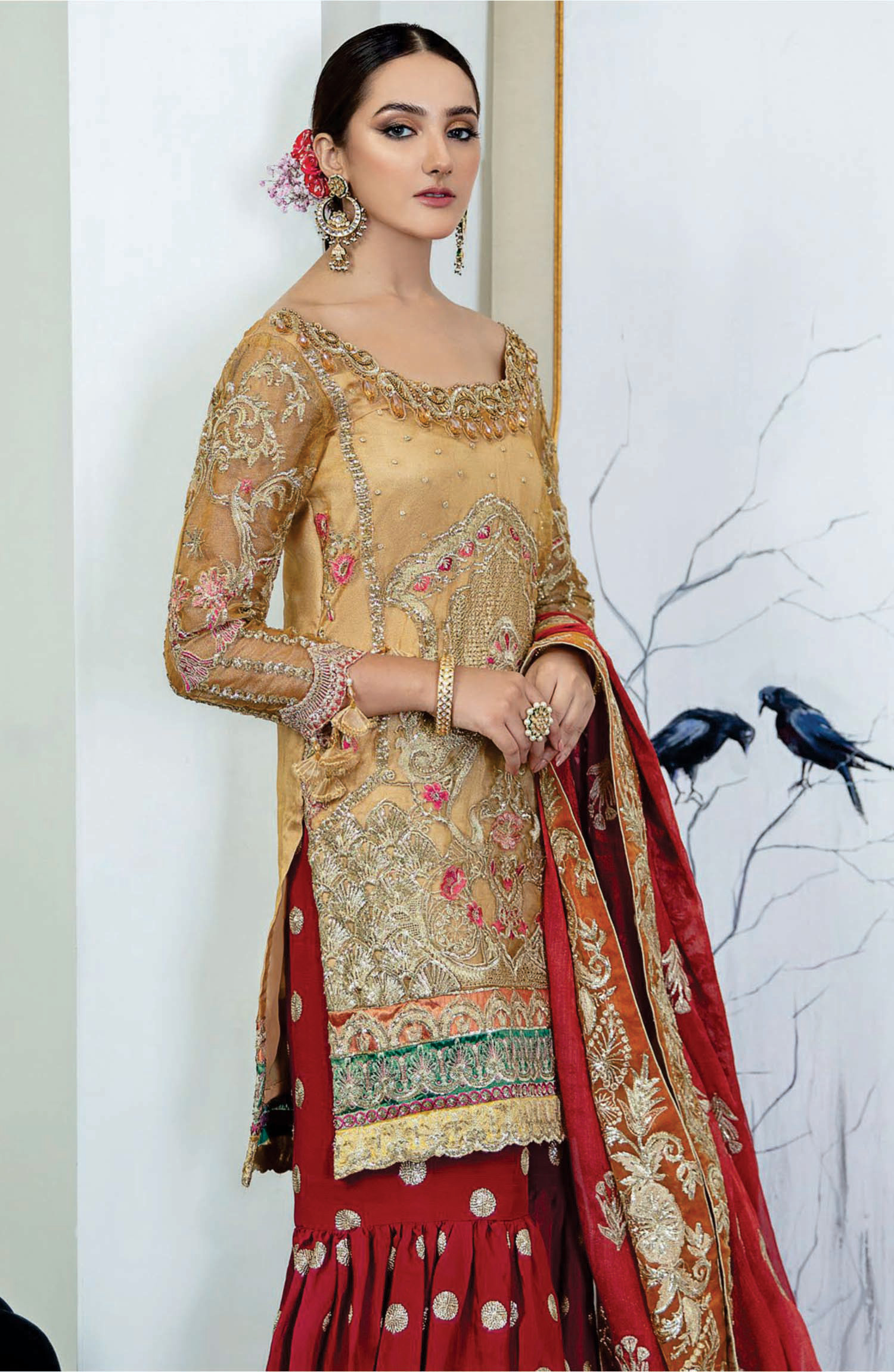 You’ll always look and feel your absolute best in this Embroidered zari net front with Embroidered Masoori dupatta which will soon become your most favorite.