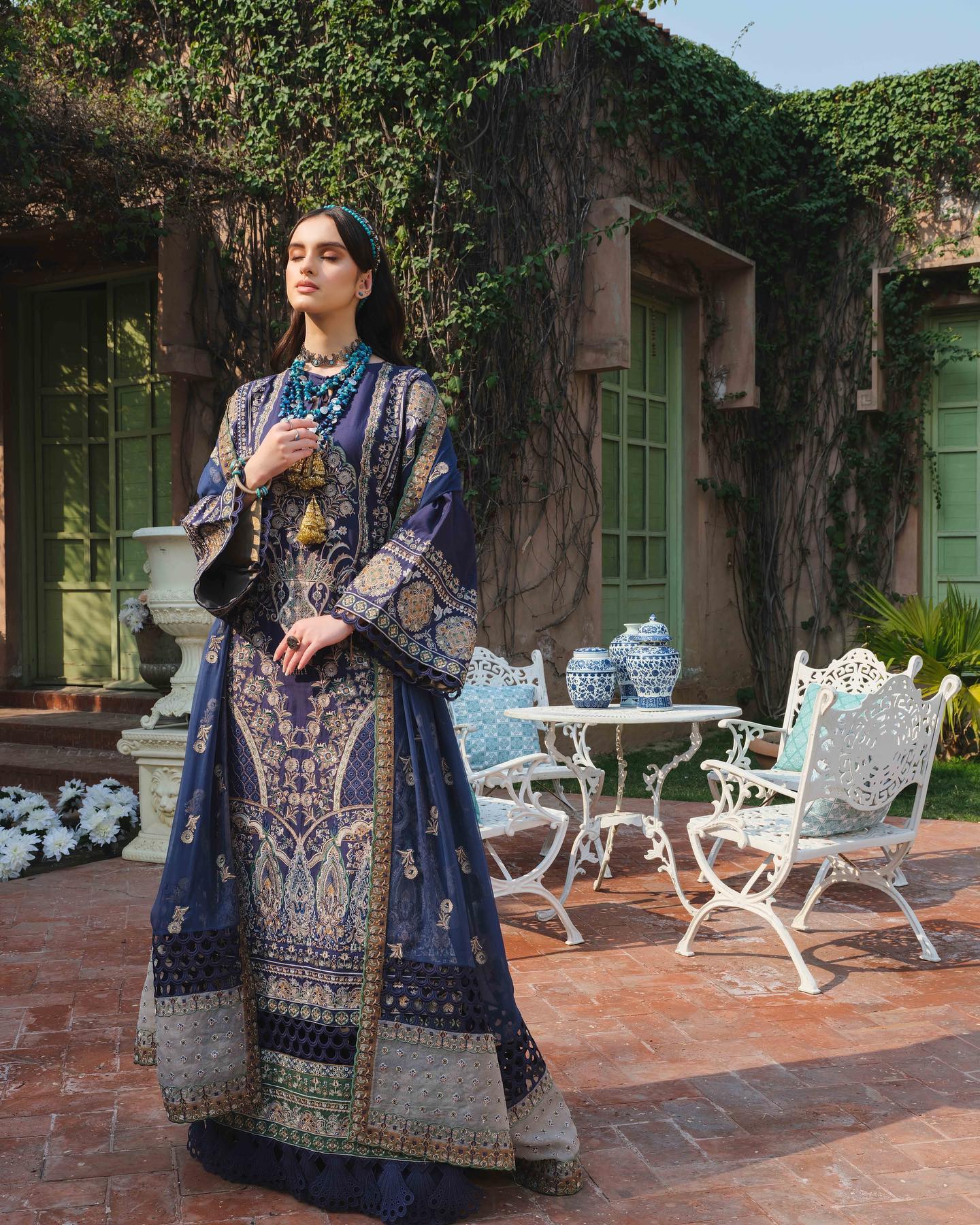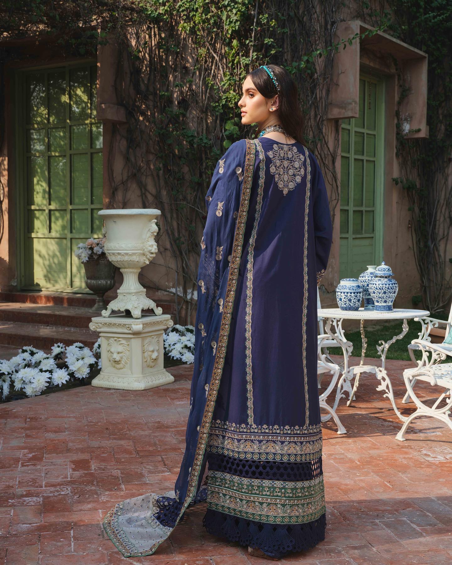 123Embroidered lawn front back & sleeves